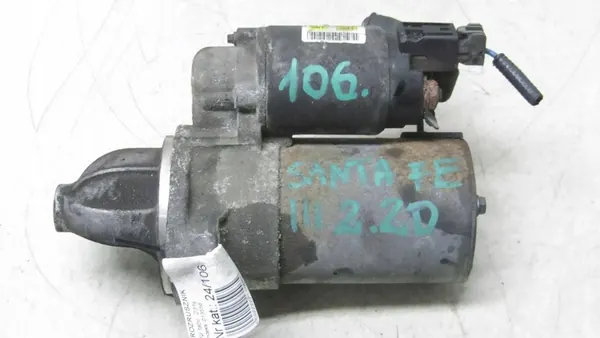 Arranque para Hyundai Santa Fe III, motor 2.2L, fabricado en 2016. Esta pieza proviene del desmantelamiento y está en estado usado. El número de pieza es 36100-2f155. El tipo de vehículo es 4x4/SUV. El estado de la pieza se representa con precisión en las imágenes proporcionadas.