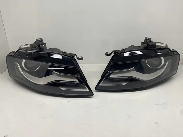 Juego completo de faros delanteros izquierdo y derecho para AUDI A4 B8 antes del facelift. Los faros están completos como se muestra en las imágenes e incluyen módulos (uno falta bombilla). Son de tipo Bi-Xenón y son adecuados para vehículos europeos. Estado: Usado.