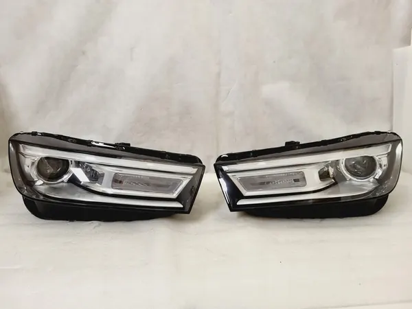 Faros AUDI Q5 BI-XENON LED usados, completos sin equipo adicional. Los faros han sido reacondicionados con lentes nuevas. Están diseñados para la versión americana del vehículo e incluyen ambos lados, izquierdo y derecho. Características incluyen ajuste eléctrico de altura y luces de cruce de xenón. Los números OEM son 80A941005B y 80A941006B.