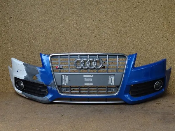 Parachoques delantero completo en versión S-LINE adecuado para AUDI S5 A5 8T pre-facelift de 2007 a 2011. Números OEM: 8T0807437AB, 8K0971095 (cableado PDC). Estado usado, pieza original, reparada. Nota: La rejilla cromada está agrietada como se muestra en las fotos. Las fotos reflejan el estado real del artículo.