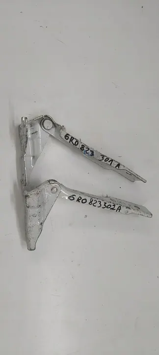 Artículo en venta: bisagras de capó izquierda y derecha para VW Polo V. Números de catálogo OEM: 6R0823302A, 6R0823301A. Piezas originales en estado usado. Versión europea, adecuadas para pintar.