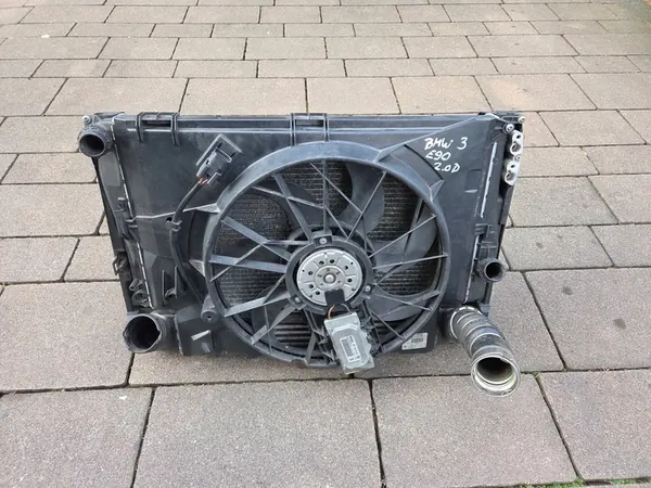 Conjunto completo de radiador con ventilador - pieza original para BMW 3 E90 E91 2.0D, años de modelo 2004 - 2012. Los números de pieza OEM incluyen 7801993-01, 7561711.9, 781025802 y 110748-10. El estado es usado, como se muestra en las fotos adjuntas. Esta es una versión europea. La compra incluye el artículo mostrado en la foto.