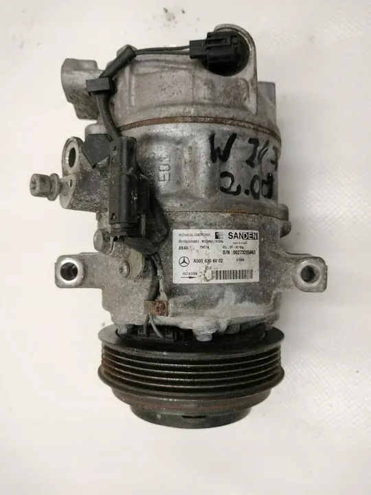 Compresor A/C usado para Mercedes-Benz Clase B W247 B200 2.0D, versión europea. Número de pieza OEM A0008306002. Este compresor es una pieza original con el logo del fabricante, asegurando calidad. Peso con embalaje de 10 kg.