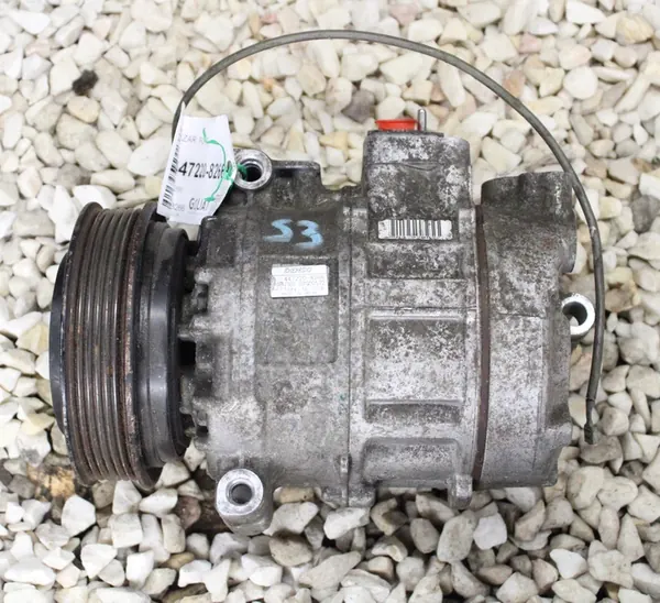 Compresor de aire acondicionado original para vehículos Porsche. Números de parte OEM: 99612601152 y 447220-8266. Esta pieza usada es fabricada por Denso y es adecuada para automóviles de pasajeros. Pesa 6 kg y es de calidad original con el logo del fabricante del vehículo (OE). La ID del compresor es 99612601152 y es una versión europea.