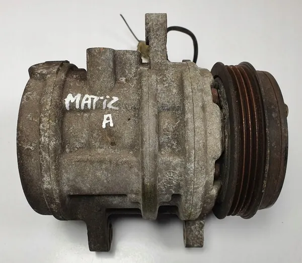 Compresor de aire acondicionado con número de parte 96858724 para Chevrolet Matiz II, modelo de 2008, código de motor: 1.0 / B10S1. El vehículo cuenta con una transmisión manual de 5 velocidades y es una versión europea.