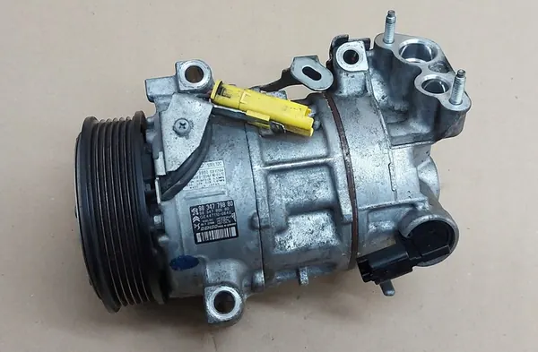 Compresor de aire acondicionado usado para Peugeot 208 1.2 THP. Esta pieza es un componente de fabricante original (OEM), asegurando alta calidad con el logo del fabricante. El compresor es adecuado para vehículos de pasajeros y es una versión europea. Número de parte: 9834779880. Se emitirá una factura de IVA al momento de la compra.