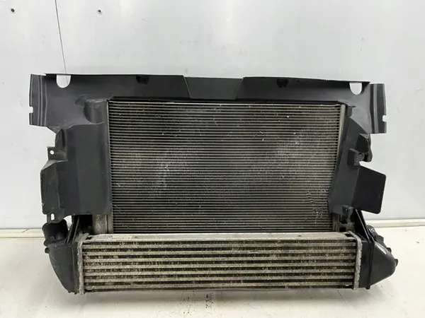 Conjunto completo de radiadores para Dacia Logan I y Sandero 2005-2014, 1.5 dCi. Este conjunto incluye el intercambiador, el radiador de agua, el condensador de aire acondicionado y el ventilador. Los números de pieza (OEM) son 8200765566 y 8200409045. La pieza es usada, y su estado es visible en las fotos proporcionadas. Las imágenes muestran el estado real de la pieza, y cualquier daño, reparación o signo de uso está marcado. Se pueden solicitar fotos adicionales.