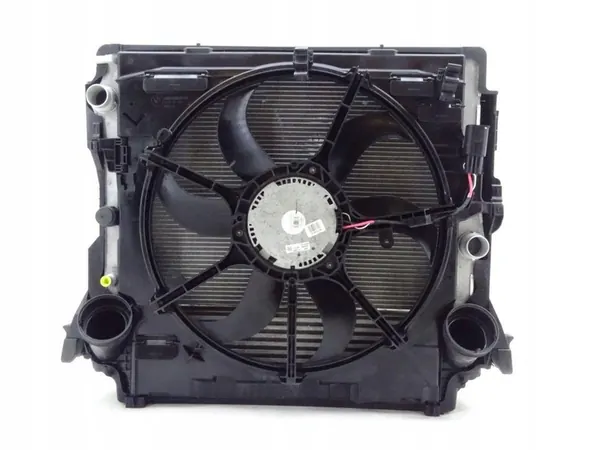 Conjunto completo de refrigeración que incluye radiador, condensador de aire acondicionado, intercambiador de calor y ventilador para BMW X5 F15 (2015-2018) con código de motor N20. Los componentes son los siguientes: