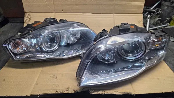 Faro xenón para Audi A4 B7 (2006-2008) en condición usada. Las lentes están en buen estado y el zócalo de la bombilla de posición no está quemado. Bombillas gratis incluidas. Los faros vienen con tapas y convertidores, y todos los soportes de montaje están intactos; nada está pegado o soldado. Esta es una versión europea y no ajustable. Fabricado por TYC.