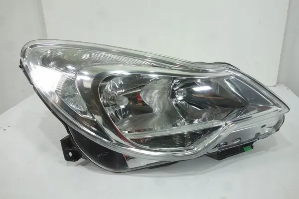 Faro delantero derecho para Opel Corsa D (2011-2014) con un centro plateado. El estado es muy bueno con un pequeño daño de montaje. El número de pieza OEM es 95511328.