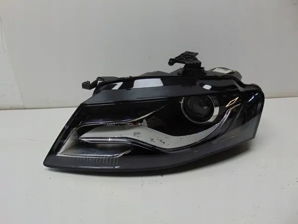 Este artículo es un faro delantero izquierdo para Audi A4 B8, OEM 8K0941003C, como se muestra en las fotos. La pieza es usada y presenta daños visibles, detallados en las imágenes. Proviene de un vehículo de versión europea. El faro es original y las fotos son reales.