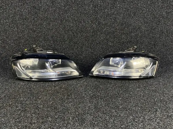 Juego de faros delanteros para AUDI A3 8P0 LIFT. Esta pieza proviene de un vehículo desmantelado. Números de pieza OEM: 8P0941003AJ, 8P0941004AJ.