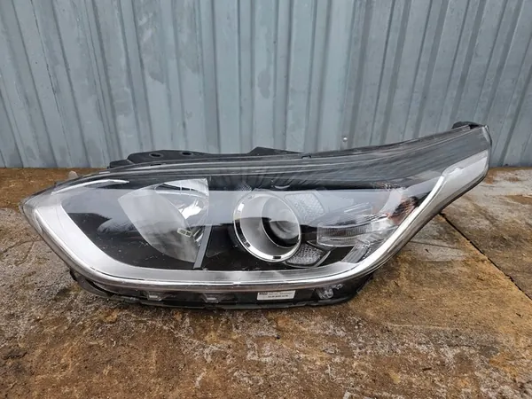 Se ofrece un faro izquierdo para KIA CEED III, pieza original en buen estado como se muestra en la imagen. Esta es una versión europea con luces de cruce tradicionales/halógenas y ajuste de altura eléctrico. La pieza es usada y se proporciona con factura de IVA. El número de parte OEM es 92101J7050.