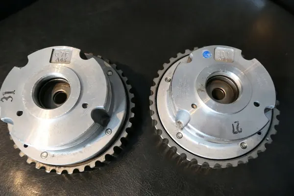 Juego de engranajes de sincronización variable retirado de un motor 1.6 EcoBoost Ti-VCT en funcionamiento. Condición: usado. Calidad de la pieza (según GVO): O - original con el logotipo del fabricante del vehículo (OE). Fabricante de la pieza: Ford. Tipo de vehículo: coches de pasajeros. Tipo de motor: gasolina. Números de pieza: DS7G-6C524-AA y 4M5G-6C524-ZA. Compatible con modelos Ford Mondeo, Focus, C-Max, Kuga y Volvo S60, V60, V40, V70 y S80.