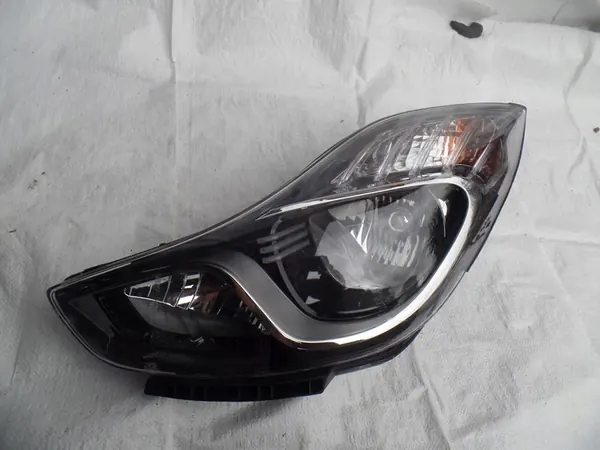 Lámpara delantera izquierda usada para HYUNDAI IX20, OEM 92101-1K000. La lámpara tiene el cristal ligeramente rayado y un soporte roto, visible en las fotos.
