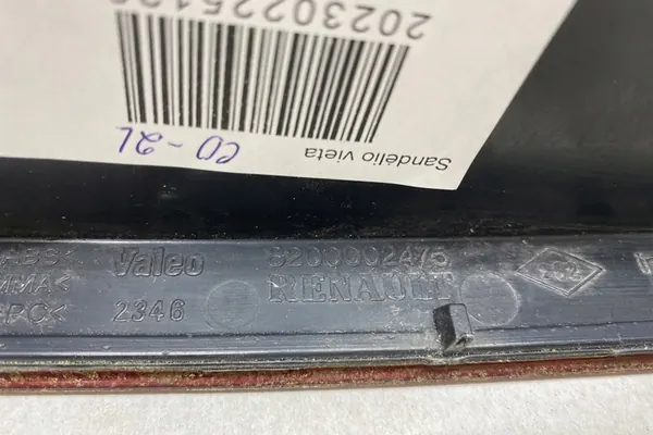 Luz trasera izquierda usada para RENAULT LAGUNA II (BG0/1_), motor diésel 1.9L, 79kW. Esta es una pieza original de Renault OE, número de catálogo 8200002475. La pieza es adecuada para automóviles de pasajeros y cumple con los estándares de calidad GVO (O - original con logo del fabricante del vehículo). Factura disponible a solicitud.