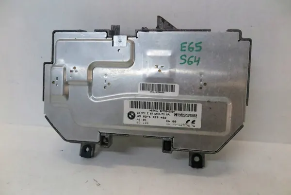 Módulo de control de monitor trasero para BMW E65, año modelo 2004. Esta pieza es usada y su estado es visible en las fotos. El modelo de vehículo es BMW Serie 7 E65 E66 con un motor de 3.0 L y transmisión automática. El número de pieza OEM es 6929482. Hay disponibles más piezas para este modelo. Se puede emitir factura de IVA.