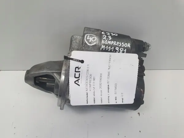 Motor de arranque usado para Mercedes W203 2.3 K - Gasolina, años de producción 2000-2007, cilindrada 2295cc, código de motor M 111.981, kilometraje de la inspección 142930 km, número de registro B11MDD, número de pieza 0001107403. La pieza está en muy buen estado y funcional. El vehículo fue conducido antes del desmontaje, y todo funcionó perfectamente hasta el final. La pieza es original y ha sido almacenada en un almacén limpio y cálido, asegurando que mantenga su calidad a pesar de las condiciones climáticas. Proviene de una fuente legal con prueba de compra.