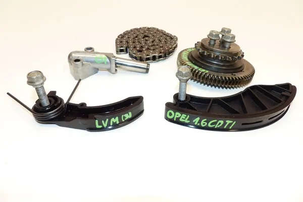 Juego de distribución para vehículos OPEL, incluyendo ASTRA J, ASTRA K, MOKKA e INSIGNIA con motores 1.6 CDTI. Los números de piezas OEM incluyen 55573877, 55488243, 55596723 y 55571669. El artículo está en muy buen estado usado, como se muestra en las imágenes.