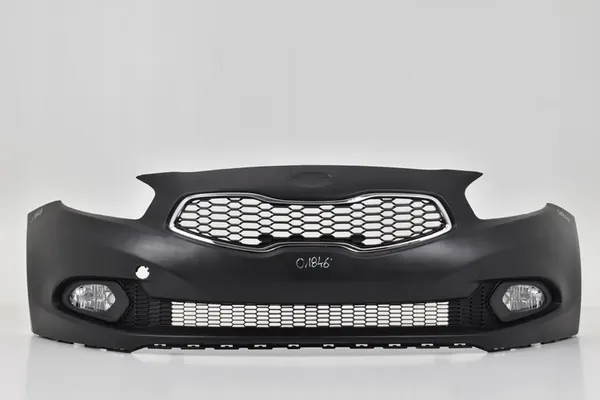 Nuevo parachoques delantero para reemplazo de KIA CEE'D II (2012). Este parachoques no tiene aberturas para sensores de estacionamiento. Incluye una rejilla sin abertura para cámara, aberturas laterales para luces antiniebla y una luz antiniebla doble (izquierda y derecha). La rejilla central está incluida y la superficie de pintura es nueva y está lista para pintar.