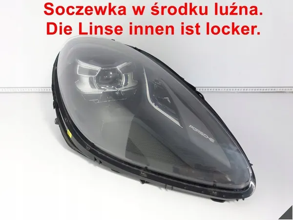 Faro full LED derecho usado para Porsche Macan 95B Lift (2018-2022). La lente está suelta, el vidrio tiene rayones y la carcasa está dañada. Antes de comprar, verifique el número de pieza para compatibilidad y evite problemas potenciales. Revise todas las fotos que muestran defectos y daños. No confíe únicamente en la información de compatibilidad proporcionada en el anuncio, ya que la compatibilidad precisa puede ser difícil. Se recomienda contactar a un concesionario autorizado si tiene dudas.