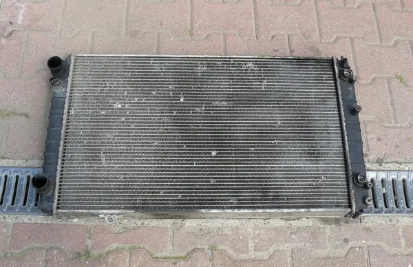 Radiador de agua original para Audi A8 D2 3.7 V8 230CV, producido entre 1994 y 1998. La pieza es usada y tiene un soporte inferior que necesita ser reemplazado. Hay signos de desmontaje de las mangueras de transmisión. Número de pieza OEM: 4D0121251F. Fotos reales disponibles.