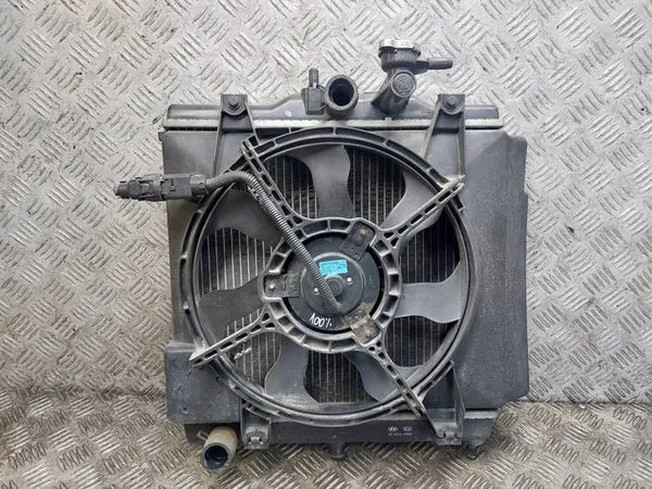 Radiador de agua y ventilador usados para KIA PICANTO I, motor 1.1 12V, 65 CV, año 2005. Años de producción: 2003-2007. Tipo de carrocería: hatchback de 5 puertas. Número OEM: 25310-07000. ID de stock: 210240. La pieza está en buen estado y proviene del desmontaje. Ha sido inspeccionada visualmente antes del envío.