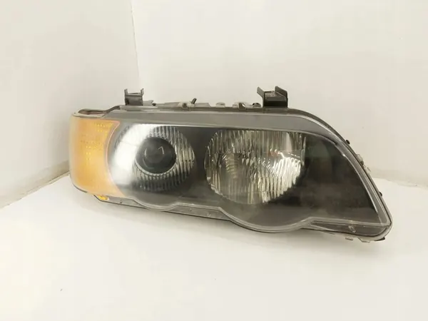 Reflector derecho usado para BMW X5 E53 2000. Números OEM incluyen 15177400 y 8386708. Detalles del vehículo: BMW X5 2000, SUV, dirección a la izquierda, gasolina, capacidad del motor 4.4 L, potencia 210 kW / 282 HP, transmisión automática. Color: Negro. Kilometraje: 215670 km.
