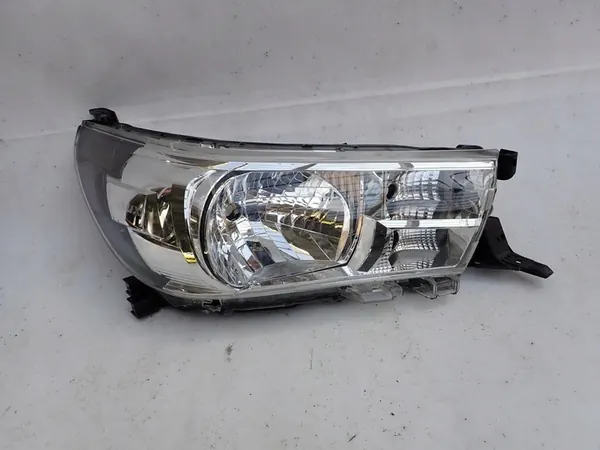 Carcasa de faro delantero derecho para TOYOTA HILUX VIII 8 (2015-2020). El vidrio está dañado en áreas visibles como se muestra en las fotos. Las imágenes representan el producto real, pero puede haber rasguños adicionales debido al almacenamiento, manejo y transporte de varias piezas. En nuestra opinión, cada pieza vendida requiere repintado.