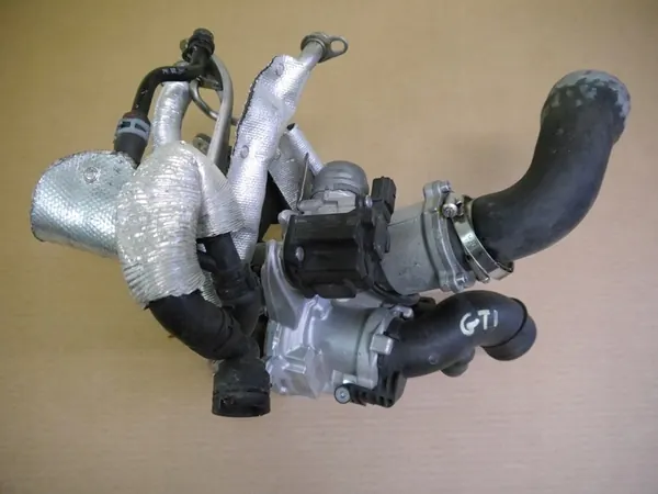 Turbocompresor usado para vehículos Audi y VW con motor 2.0 TSI. Esta pieza es un componente de equipo original (OEM), marcado con el logo del fabricante. El número de pieza es 06K145701M. Se incluye una factura de IVA y está empaquetada en una caja de reemplazo.