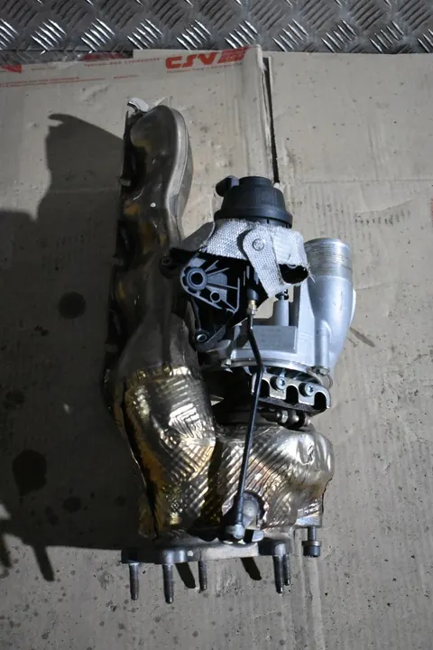 Turbocompresor izquierdo usado para Audi RS6 y RS7 C7 CWU CWUC con un kilometraje de solo 47,000 km. Esta pieza es un componente original Audi OE, asegurando alta calidad. Es adecuada para automóviles de pasajeros y cumple con los estándares de calidad GVO, marcada como Q - original con el logo del fabricante. Los números de parte OEM incluyen 0079145703R, 079145721B y 55 5525. Esta es una versión europea.
